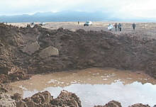 | 落ちた場所(Carancasという町の郊外)は,写真からは未固結の地層のような感じもしていましたが,こんな場所に落ちたのだそうです(by