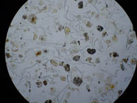 AT火山灰の偏光顕微鏡写真このAT火山灰は泡の破片の形をした火山ガラスを主体としていることが分かります.薄い弓なりの物は泡の断面を示しています. 採取地についてはこのページの「桜ヶ丘高校工事現場からAT火山灰!」をご覧下さい。 更新日:070901 ↑このページの最初へ