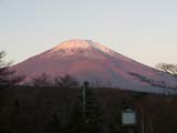 日本大学文理学部山中セミナーハウスからの"赤富士"11月25日早朝(6時30分頃)の富士山です.撮影場所は日本大学富士山監視カメラのある日本大学文理学部山中セミナーハウスのロビーです.カメラはロビーの直ぐ外側にあります.したがって監視カメラの画像と同一のアングルです.富士山の赤富士をこのように目の前で,しかも室内から見ることのできるスポットはなかなかないのではないでしょうか.セミナーハウスに宿泊される方には,予め監視カメラで富士山が晴れていることを確認し,日の出時刻頃から(この季節は6時30分前後)ロビーで待ち構えることをお勧めします.赤富士が見えるのは15分か20分間です.生の赤富士に出会えた時,すばらしい感動が得られることを保証します. 更新日:071126 ↑このページの最初へ