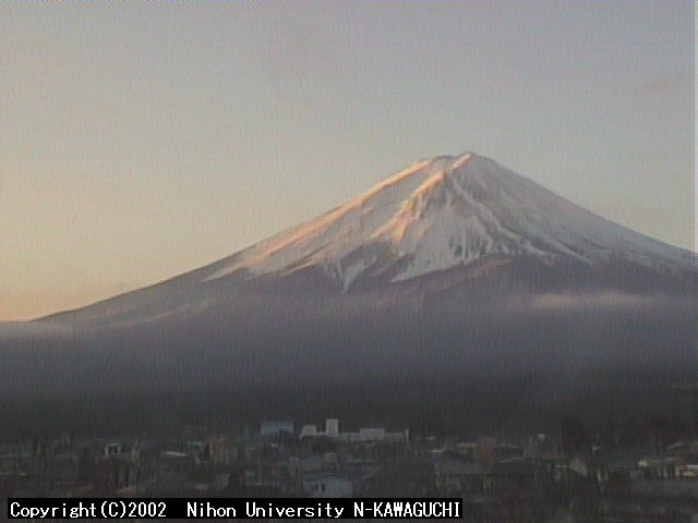 2008年8月9日富士山初冠雪2008年8月27日,甲府地方気象台から9日に富士山の初冠雪を観測したと発表された.平年より53日、昨年より58日早く,1914年8月12日の記録を抜き,観測史上最も早い観測となりました. 「初冠雪」とは,その年の日平均最高気温が記録された日以降に,麓から山頂が白く見えた時のことを言います.この夏,富士山での日平均最高気温は7月21日(10.6℃)でした.また,それは雪でなくても構わず,今年は日中に降った「雹」でした. ただし,この後,日平均最高気温が10.6℃を上回る日があれば,8月9日の「初冠雪」は取り消しになります. 更新日:080903 ↑このページの最初へ