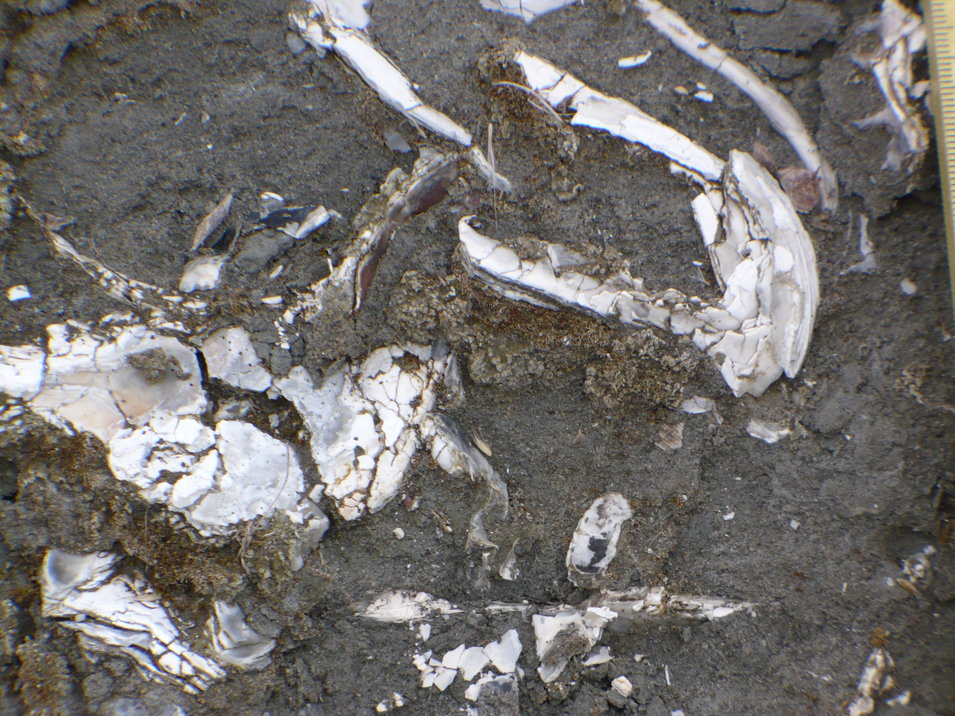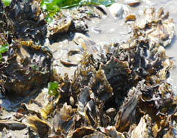 多摩丘陵のカキ礁現在は海から遠く隔てられた多摩丘陵にある八王子市ですが,150万年前の前後には,海がこの付近まで浸入したり(海進)、海が退いたり(海退)を繰り返していました. 写真は小山田層に見られるカキ礁の跡で,海が浸入していた事の最も強力な証拠です.カキ礁は潮間帯に形成されることが知られており,この付近に海面があったことを意味します.カキはマガキですが,ほとんど合弁のマガキばかりからなり,この場所に生息していた状態から泥の中に押しつぶされたような様子が見て取れます. この約6m下位には厚さ数mの礫層があり,扇状地に海が浸入してきた過程が頭の中に浮かんできます. 遠藤邦彦 撮影更新日:080125 ↑このページの最初へ