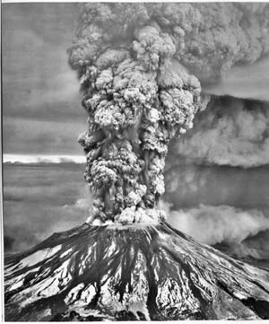 2-1 噴火規模・噴火様式と降下火砕堆積物図2-1は浅間前掛火山の東麓にみられる降下軽石層である.白っぽい色の降下軽石層は上位から天明大規模噴火(18世紀),天仁大規模噴火(12世紀),古墳時代大規模噴火(4世紀)、そしてそれ以前のプリニー式大規模噴火時のものである.間に挟まる黒色の火山性土壌層は土壌および火山砂からなる.黒色火山性土壌層は噴火の静穏期あるいは噴火は生じていても大規模噴火がみられなかった時期を代表している.プリニー式大規模噴火時には、噴煙から大量の軽石が降下するとともに火砕流が発生し,火口付近には溶結火砕丘が形成されて,その一部は火砕成溶岩として流下する.浅間前掛火山の山体はこうした大規模噴火のたびに成長を繰り返してきた. 図2-2は浅間前掛火山北東麓における12世紀の天仁大規模噴火および18世紀の天明大規模噴火の噴出物の重なりを示した写真である.大部分を占めるのは天仁大規模噴火の噴出物である.最下位の岩片を含む層が追分火砕流堆積物で、その上位に成層した赤色および淡桃色火山砂層がのる.火山砂層の上位は侵食されて凹凸面が形成されている.これらを覆って黒色および灰色火山砂層,厚さ20cm程度の降下軽石層(B'-1),厚さ40cm程度の淡褐色火山砂層(B'-2),厚さ1m以上の降下軽石層(B'-3)が堆積している.最下部の火砕流の堆積には数日程度,その上位の火山砂層の堆積には数年以内程度,その上位の侵食面の形成には1年以内程度,さらに上位の降下軽石・火山砂・降下軽石層の堆積には数ヶ月以内程度の時間を要しているものと推定され,すべてを合わせても数年以内程度の比較的短期間での断続的な噴火活動の産物であると考えられる. この上位には,降下軽石層を侵食した面に土壌および火山砂を含む黒色火山性土壌層が堆積している.この黒色火山性土壌層には薄い降下軽石層(As-A')が含まれている.この黒色火山性土壌層の上位に天明大噴火時(西暦1783年)の降下軽石堆積物が載り,それをさらに土壌と火山砂からなる黒色火山灰性土壌層が覆っている.天明と天仁の噴出物の間にある厚さ30cm程度の黒色火山性土壌層は670年程度の比較的噴火活動が静穏な時期に堆積したものである.厚さの厚い大規模噴火堆積物と比べると厚さは薄いが,形成時間ははるかに長いことになる.こうした静穏期にも浅間前掛火山は活発なブルカノ式噴火を行っていたとする古記録が残されているが,その噴出物である火山砂は,この厚さの薄い黒色火山性土壌層中に含まれている.浅間前掛火山の場合,ブルカノ式噴火の堆積物は,地層としてはほとんど残されない程度のものであることがわかる. 2-2 プリニー式(準プリニー式)噴火とはプリニー式噴火とは,噴煙柱が20kmから30kmにまで達する大規模な激しい噴火である.プリニー式噴火では、しばしば噴煙柱が崩れて規模の大きい火砕流が発生する.たなびいた噴煙の下には大量の軽石や火山灰が降下する.火砕流は10km以遠にまで到達することも珍しくない.噴煙の噴出が連続して数時間におよぶこともある.図2-3は1980年のアメリカ合衆国西部セントヘレンズ火山の噴火時の写真である.噴煙の最大高度は26kmを越えており,8時間余りにわたって10km以上の高度を持続した.浅間前掛火山天明大規模噴火時には,噴煙高度は最大で18kmを越えていたものと推定されている.プリニー式噴火は広範囲に大きな火山災害をもたらす.降下軽石・火山灰,火砕流,溶岩流などによる災害が主なものであるが,冬季積雪時に高温の噴出物で雪が融けて発生する融雪泥流や大量に堆積した火山灰や軽石に由来する火山泥流(ラハール)などの2次的な災害にも注意が必要である. 2-3 ブルカノ式噴火とはブルカノ式噴火は爆発的な噴火で,1回の噴火の持続時間は数分以内と短い場合が多い.噴煙柱の高度もプリニー式噴火には及ばない.また,噴出物の量も多くはない.図2-4はブルカノ式噴火を繰り返す活動的な火山である桜島火山の噴火例である.夜間に撮影されたもので,ブルカノ式噴火の特徴がよく現れている.高く上昇した噴煙からは火山灰が降下する.噴煙は勢いのよい上昇流なので,雷雲と同様雷(火山雷)が発生する.一方火口からは爆発によって火山岩塊(噴石)が放物線を描くようにして放出される.ブルカノ式噴火の火山災害としては,噴煙から降る降下火山灰(火山砂),小規模な火砕流,火口から放出される火山岩塊(噴石),爆発的噴火に伴う空振,また冬季の積雪時には融雪泥流などがある.噴火が連続し大量の火山灰等が山腹に堆積した場合には,雨季に土石流が発生することが多い.浅間前掛火山の場合,小規模な火砕流や大型の噴石は,火口から5km程度以内に近づかなければまず心配はない.最も警戒すべきは冬季の融雪泥流であろう. ブルカノ式噴火は,桜島火山でよく研究されており,その特性はかなりの程度明らかにされている.噴火活動が活発になると火口底が上昇し,不活発になると下降する.噴火にともなって,火口底にはしばしば溶岩塊が形成されるが,噴火によって破壊されその消長を繰り返す.噴火が活発化し火口