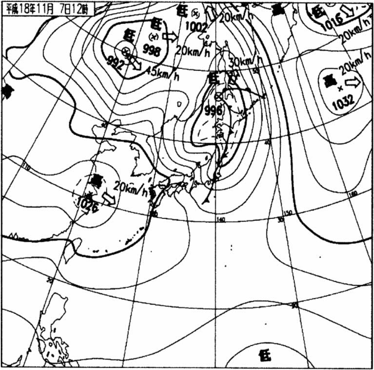 「佐呂間竜巻(20061107)発生当時の総観気象状況」山川修治 11月7日13:30頃,北海道北東部の佐呂間町で竜巻が発生し,9名の尊い命が奪われました。最大瞬間風速は藤田スケールで,気象庁調査ではF2(50〜69m/s)以上,北見工業大学の現地調査結果によればF3(70〜92m/s)が指摘され,1990年12月11日の「茂原竜巻」にほぼ匹敵する日本史上最大級の竜巻となる可能性があります。ここでは佐呂間竜巻のメカニズムを推論するために当時の総観気象状況7項目を記したいと思います。 (1)急発達中の低気圧が北西方300kmを北上竜巻が発生したのは,995hPaの低気圧が間宮海峡南部を30km/hで北東進し,北へ進路を変えようとしている時分でした(図1;下記(4)と関連)。低気圧の中心から南東側約300kmにあたる佐呂間付近は,低気圧の暖域(温暖前線の南側かつ寒冷前線の東側)内で最も大気が不安定化しやすい場にあたっていました。北海道の北方を東進していく低気圧は少なくありませんが,オホーツク海で発達しながら北上する低気圧は比較的珍しいということが特徴としてまず挙げられます。その分,南方からの暖気を強く引き寄せたということができます。 (2)積乱雲群からなるスーパーセルを伴う顕著な寒冷前線の通過対流圏下層においては暖湿気流(湿舌)が太平洋黒潮流域から上記の低気圧へ向かって流入,特に寒冷前線の南縁帯に強く流入,大気を不安定化させました。一方,寒冷前線の北西側,日本海中北部には,上空約5.5km(500hPa)に真冬並みの−30℃の寒気団が迫っていました。寒気団は寒冷前線の南に沿う暖湿気流層の上に進入,その間に横たわる寒冷前線上において,活発な上昇気流が起こり,積乱雲(Cb)列を形成しました。衛星画像(図2)では,積乱雲群からなる巨大な「にんじん状雲(tapering cloud)」が関東地方から北海道付近にかけてみられます。そのニンジン状雲の南端部付近の千葉県内でも風害が相次ぎましたが,その北部にあたる地域が今回竜巻に見舞われたわけです。ニンジン状雲の東方には先行するもうひとつのニンジン状雲があり,両者の間には晴天・下降流帯がみられ,その西側での上昇気流を強めたという構造も読みとれます。 ニンジン状雲の東縁部を北上し佐呂間付近へ到達した積乱雲は,レーダーエコー(図3)で雲頂が3つ認められ,北西-南東に長軸をもつ楕円形のCbクラスター(団塊状の積乱雲群),つまり「スーパーセル」(巨大な積乱雲の集合体で竜巻を起こしうる)を発現させています。およその水平スケールは長径17km×短径8km(典型的なスーパーセルの長径は30km程度なのでやや小型)です。そのスーパーセルが竜巻の「親雲」になりました。 (3)対流圏中層に乾燥空気の流入強い寒気団とともに乾燥空気(同日09時:寒冷前線通過直前の札幌上空4〜5kmで確認)も北北西方より流入,それが大気の不安定化を加速させたとみられます。対流圏中層に乾燥空気があると,その中を通過する雨滴・氷晶(氷塊)が融解・昇華し,空気を冷却します。それが下降気流を生じ,対流活動を激化させ,その隣接部分では上昇気流が強まります。 (4)極めて鋭い楔状トラフの襲来による上昇気流と渦の発生上記(1)(2)と関連しますが,東シベリアから日本海にかけて北から南へ走る極めて急峻な楔状の気圧の谷(トラフ)の東縁部が,対流圏の上空ほど発達した構造で北海道にさしかかっていました(図4)。そのトラフの前面(東側)の下層では暖かい太平洋からの温暖・湿潤な気流,後面(西側)中層では北極海の東シベリア海,東シベリアからの寒冷・乾燥な気流が,北海道方面へ吹き込みました。北日本付近における北西-南東の気温差は25℃/1000km(500hPa)に達しました。また,寒冷前線と対に存在する上空約9.5km(300hPa)のジェット気流(寒帯前線ジェット)は,北海道では南南西60m/sに達していましたが, 風上の本州よりはやや弱く,北海道の上空で発散していたことが,下層の収束と上昇気流を引き起こしたと考えられます。さらに,対流圏中下層で水平シア(風向・風速が水平方向にどの程度異なるかを示す)の非常に大きな両気流の接触・収束があり,低気圧性(反時計回り)の渦が発達し,竜巻発生の原動力になったと推測されます。この上空での深いトラフの状態は約1週間継続し,奥尻島(2006年11月9日13JST頃),富山湾(2006年11月12日12JSTすぎ)など,日本各地において竜巻の頻発を招きました。 (5)スーパーセルに寄与した山岳効果寒冷前線の東側において,積乱雲群(雲頂高度:約12km)は日高山脈の東方約45kmを北北東進し,石狩山地の喜登牛山(1312m)の西側の鞍部を越えて,弱まることなくそのまま移動しました。そして,石狩山地の北側約40kmの佐呂間町付近まで達した頃,西方75kmの北見山地越えの寒気団が中層に進入し,積乱雲群はスーパーセル(雲頂高度:約13km)へと発達しました。さらに,上記の南方と西方から入った山越えの両気流が,不安定大気層内でジャンプする気流(ハイドローリックジャンプ;跳ね水現象)を生じた可能性も推測されます。 (6)オホーツク海沿岸地表付近の暖湿状態が助長した大気不安定化当日,佐呂間町における最高気温が18.4℃